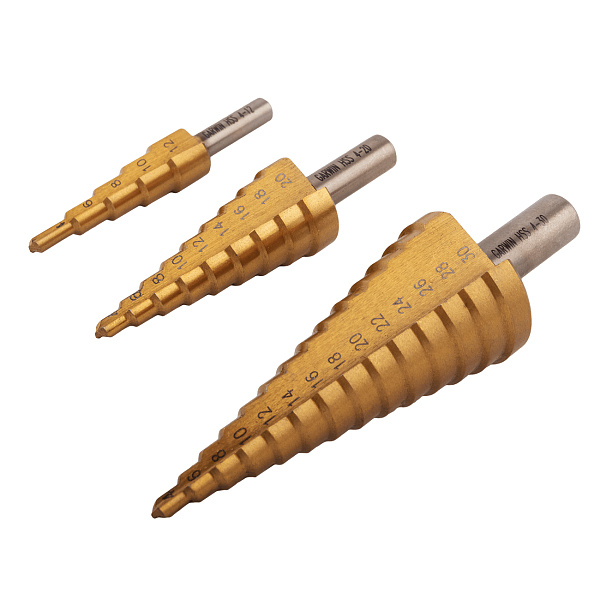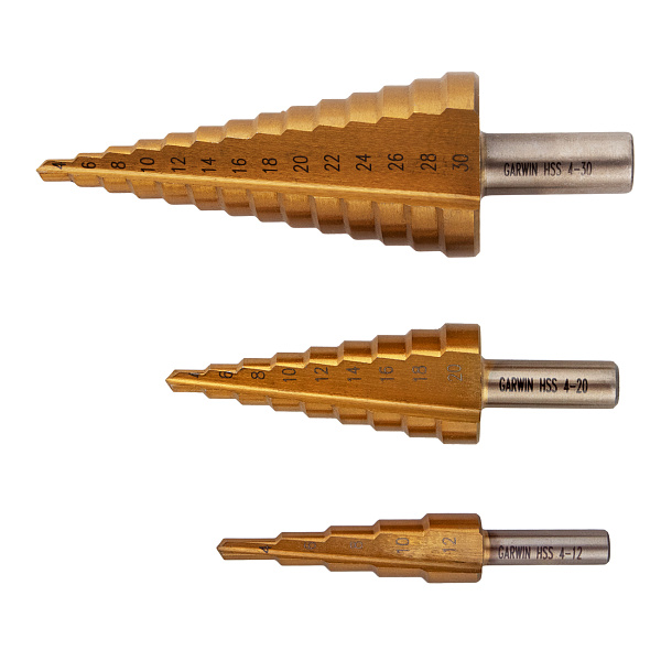 Набор ступенчатых сверл 4-12, 4-20, 4-30 мм, HSS, TiN, GARWIN INDUSTRIAL, 102550-4-12*4-30