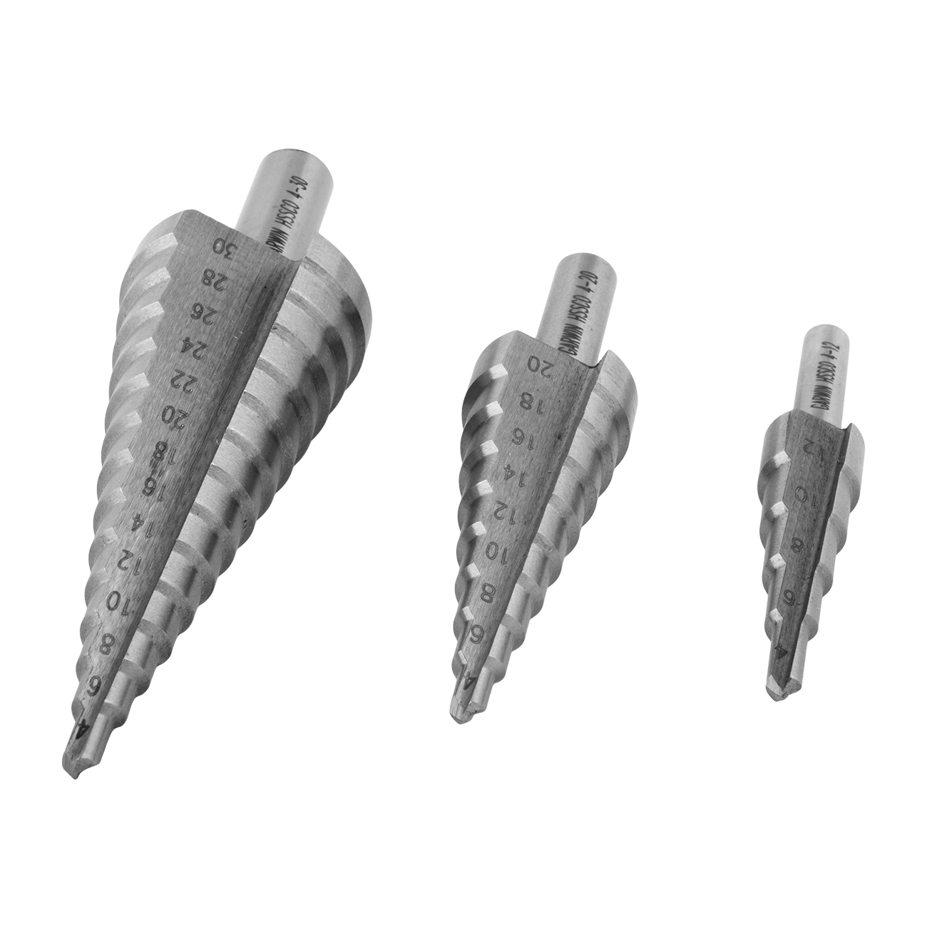 Набор ступенчатых сверл 4-12, 4-20, 4-30 мм, HSS-Co5