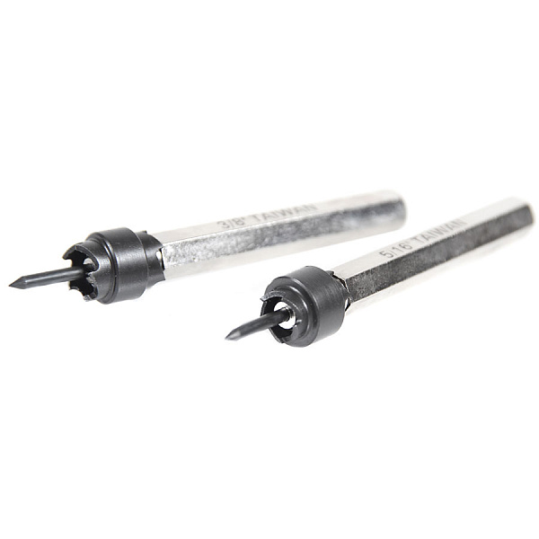 В набор входит шестигранный хвостовик 1/4" и 2 кольцевых двухсторонних сверла.