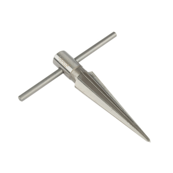 Развертка коническая Licota ATH-7003B из инструментальной стали с Т-образной рукояткой для облегчения вращения. Инструмент предназначен для финальной обработки отверстий после операций сверления, растачивания, зенкерования. Диаметр - от 4 до 22 мм.