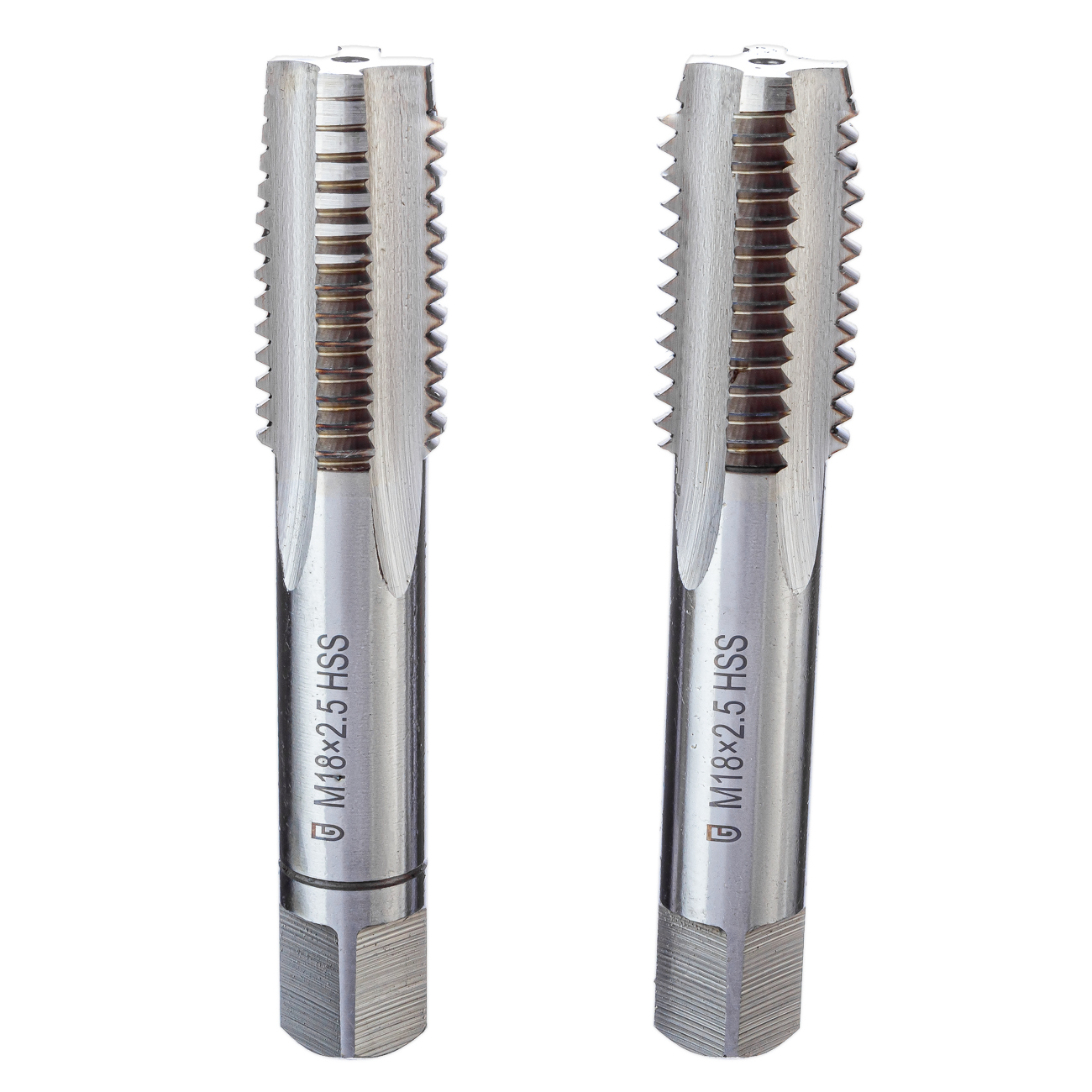 Метчики ручные M18x2.5, DIN 352, HSS, 6H, комплект из 2 штук GARWIN INDUSTRIAL для нарезания метрической резьбы в сквозных и глухих отверстиях заготовок из углеродистых и низколегированных сталей, а также других конструкционных