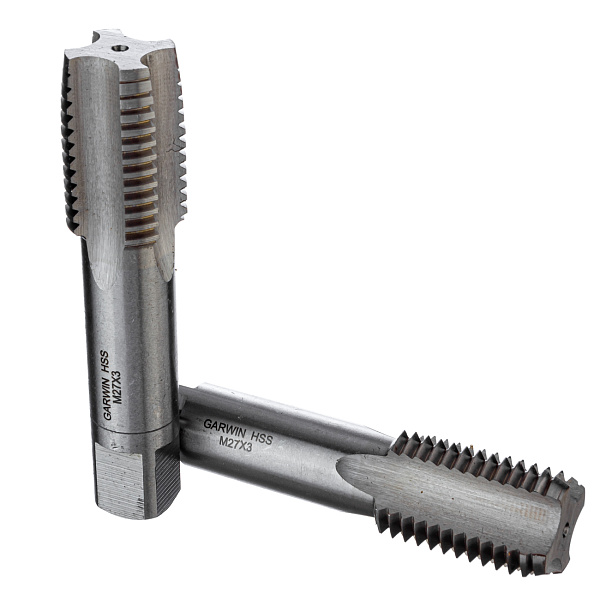 Метчики ручные M27x3.0, DIN 352, HSS, 6H, комплект из 2 штук GARWIN INDUSTRIAL для нарезания метрической резьбы в сквозных и глухих отверстиях заготовок из углеродистых и низколегированных сталей, а также других конструкционных