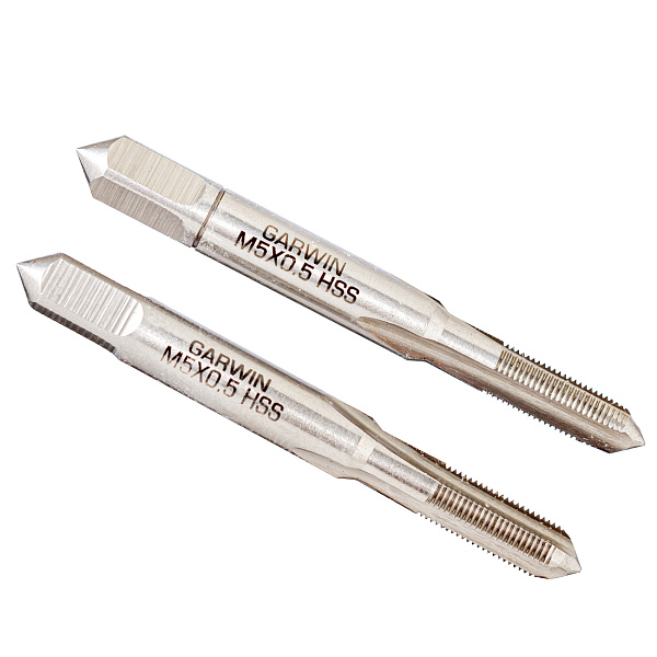 Метчики ручные Mf5x0.5, DIN 2181, HSS, 6H, комплект из 2 штук GARWIN INDUSTRIAL для нарезания метрической резьбы в сквозных и глухих отверстиях заготовок из углеродистых и низколегированных сталей, а также других конструкционных