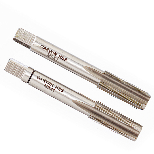 Метчики ручные Mf9x1.0, DIN 2181, HSS, 6H, комплект из 2 штук GARWIN INDUSTRIAL для нарезания метрической резьбы в сквозных и глухих отверстиях заготовок из углеродистых и низколегированных сталей, а также других конструкционных