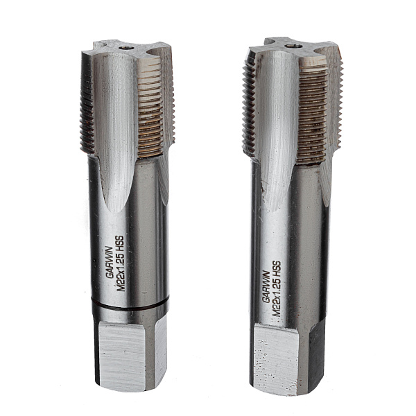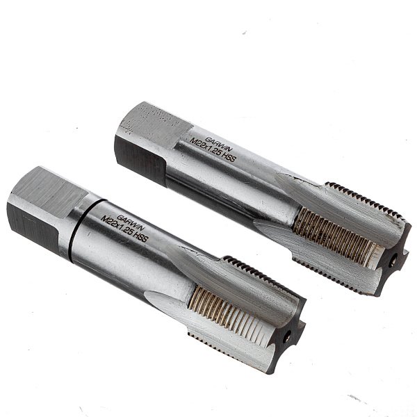 Метчики ручные Mf22x1.25, DIN 2181, HSS, 6H, комплект из 2 штук GARWIN INDUSTRIAL для нарезания метрической резьбы в сквозных и глухих отверстиях заготовок из углеродистых и низколегированных сталей, а также других конструкционных