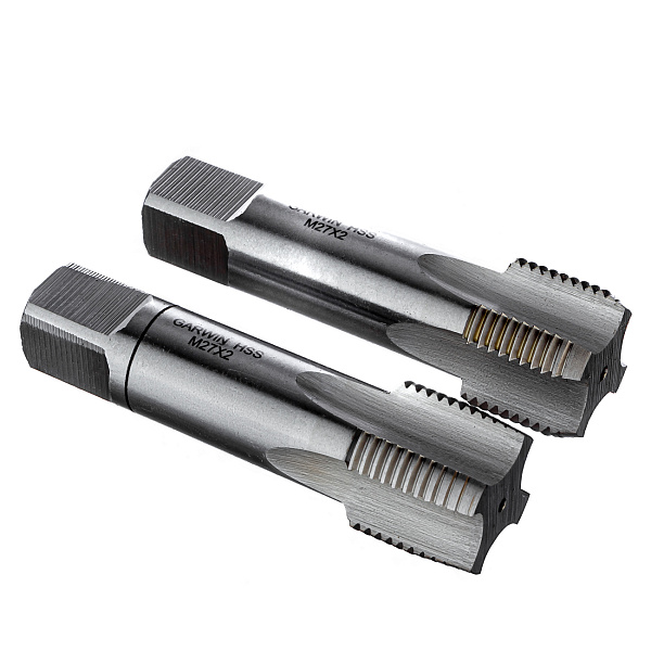 Метчики ручные Mf27x2.0, DIN 2181, HSS, 6H, комплект из 2 штук GARWIN INDUSTRIAL для нарезания метрической резьбы в сквозных и глухих отверстиях заготовок из углеродистых и низколегированных сталей, а также других конструкционных