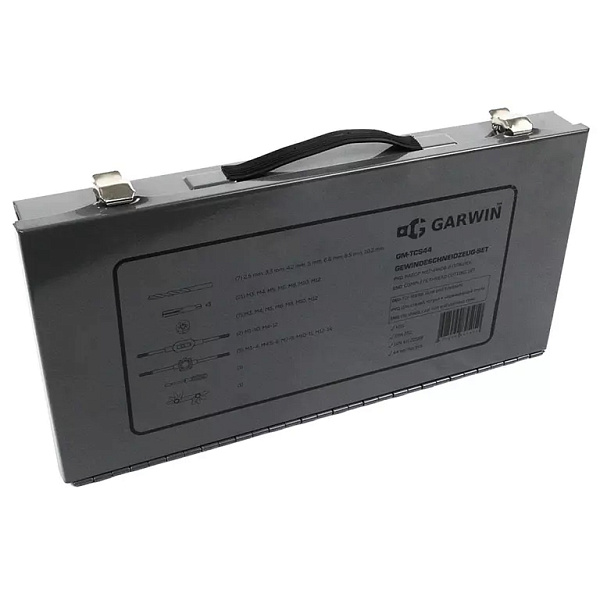 Набор метчиков и плашек GARWIN GM-TCS44 из инструментальной быстрорежущей стали HSS. В комплекте 21 метчик (по 7 метчиков для нарезания черновой, промежуточной и чистовой резьбы) и 7 плашек. Тип резьбы - метрическая, размером от М3 до М12.