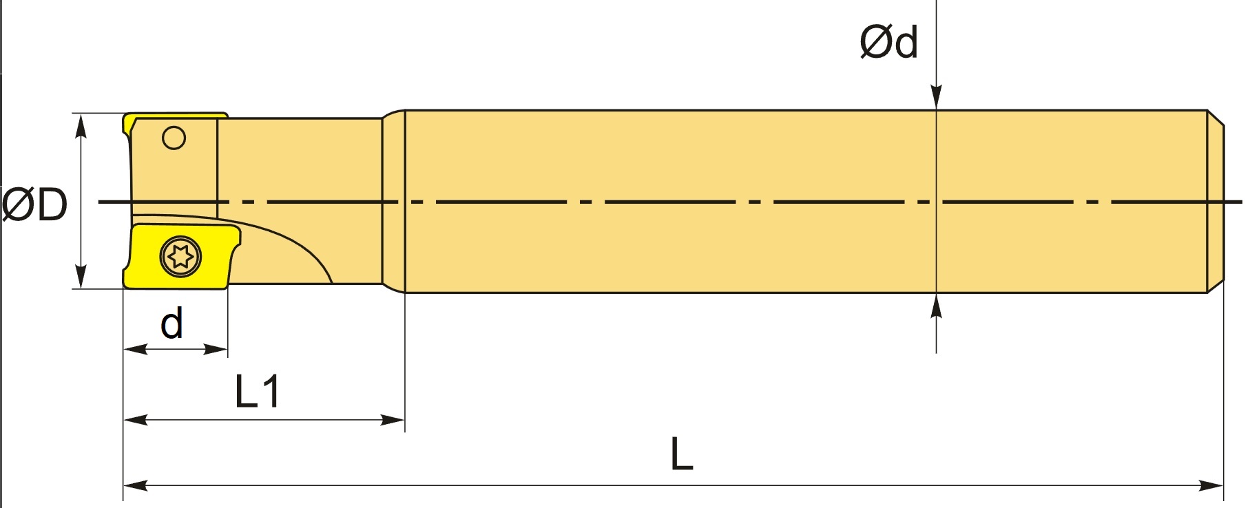 Корпус фрезы для обработки пазов и уступов GM190-20R02C20-AP11, цилиндрический хвостовик
