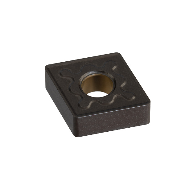 Пластина сменная токарная ромбической формы с углом 80 градусов, отверстием и стружколомающими канавками на двух сторонах.