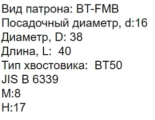 Оправка для насадной фрезы d16, A40 AD/B, BT50, JIS B 6339