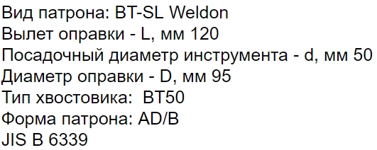 Патрон для зажима инструмента с лыской WELDON d50, A120 AD/B, BT50, JIS B 6339