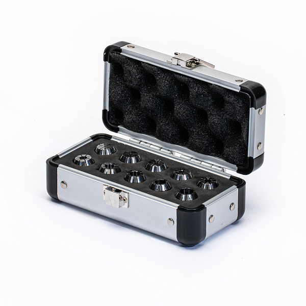 Набор цанг ER16-10 GARWIN INDUSTRIAL в металлическом кейсе предназначен для фиксации фрез, сверл и другого инструмента с цилиндрическим хвостовиком по стандарту DIN 6499.