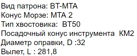 Тип хвостовика: BT50