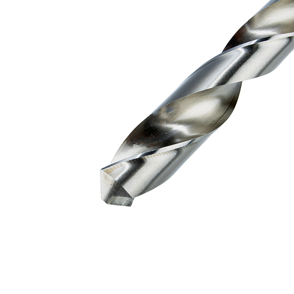 Сверло изготовлено из быстрорежущей стали HSS-G, которая обеспечивает прочность, долговечность и устойчивость к износу. Угол заточки режущей кромки составляет 118°.