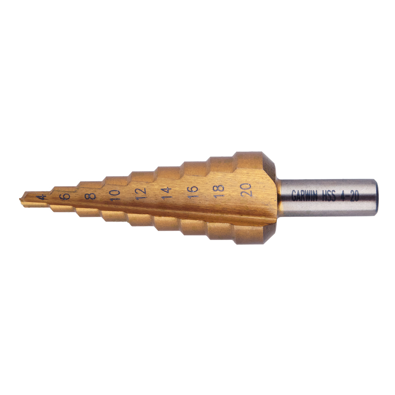 Сверло ступенчатое 4,0-20,0 мм, 9 ступеней, HSS, TiN