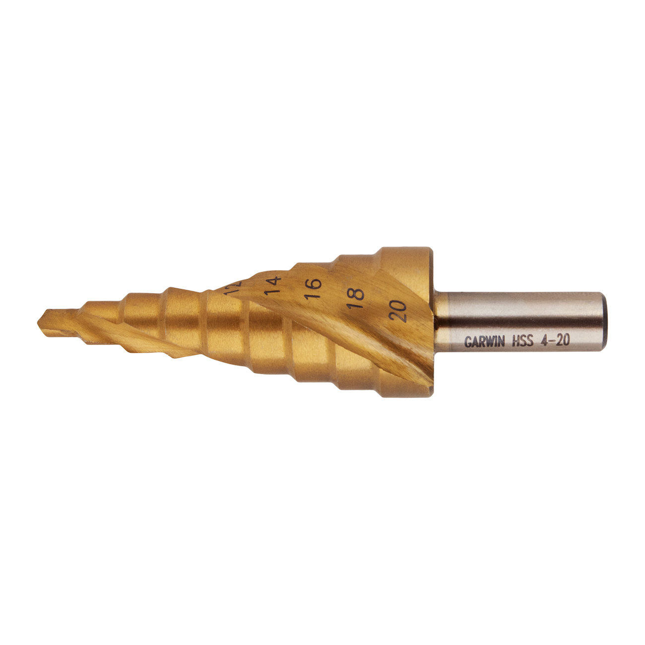 Сверло ступенчатое 4,0-20,0 мм, 9 ступеней, HSS, TiN, со спиральной канавкой