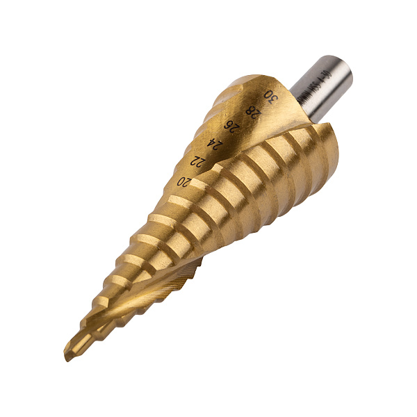 Сверло ступенчатое 4,0-30,0 мм, 14 ступеней, HSS, TiN, со спиральной канавкой