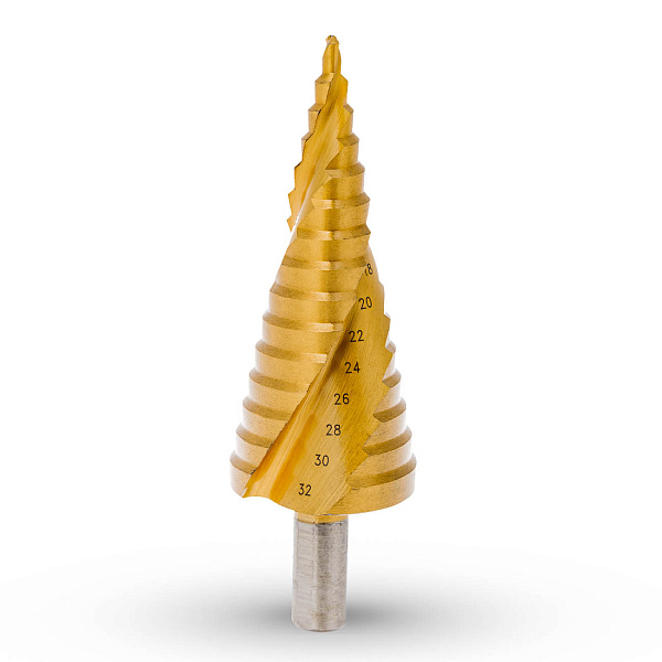 Сверло ступенчатое RUNTEC 4-32 мм, 15 ступеней, HSS-TiN, RT-DS4-32-15