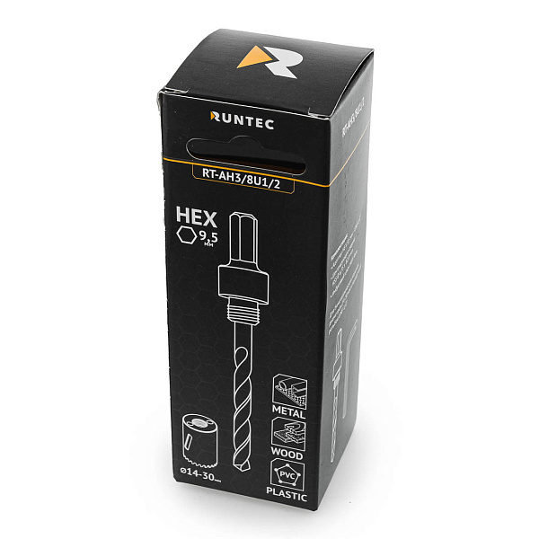 Адаптер для биметаллических коронок RUNTEC 14-30 мм, HEX 9,5 мм - UNF 1/2"