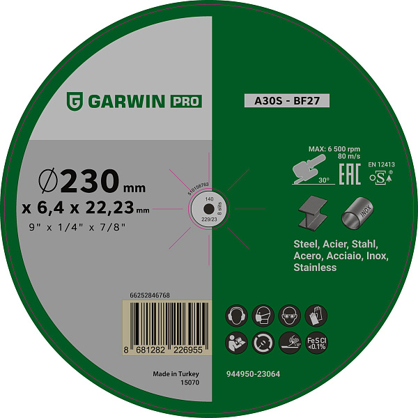 Круг зачистной A30S-230x6.4x22.23-T27 мет/нерж (Польша)