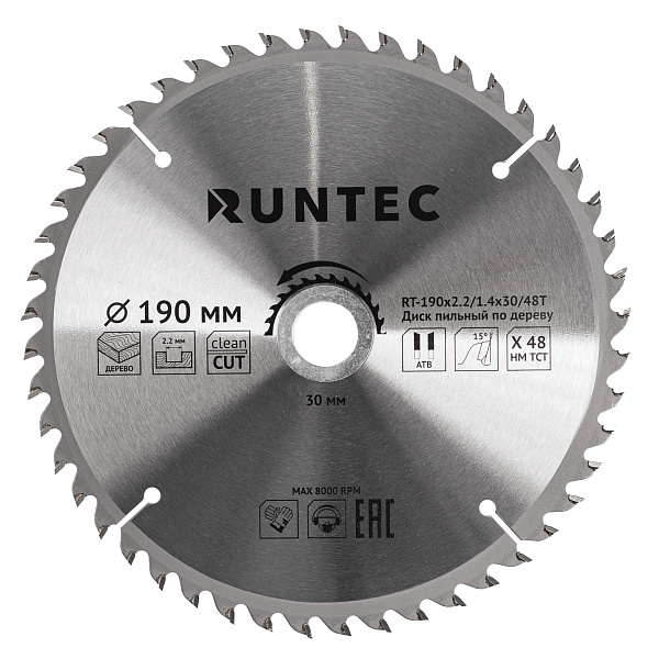 Диск пильный по дереву RUNTEC (190х30 мм 48T), RT-190x2.2/1.4x30/48T