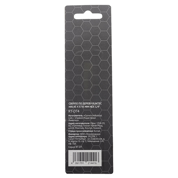 Сверло по дереву Runtec HRC45 4 x 93мм HEX 1/4"