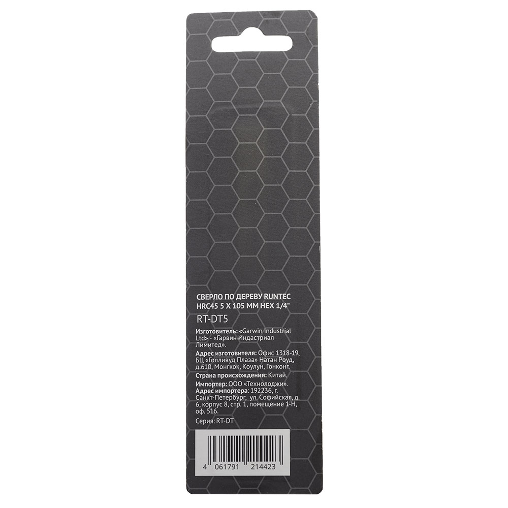 Сверло по дереву Runtec HRC45 5 x 105мм HEX 1/4"