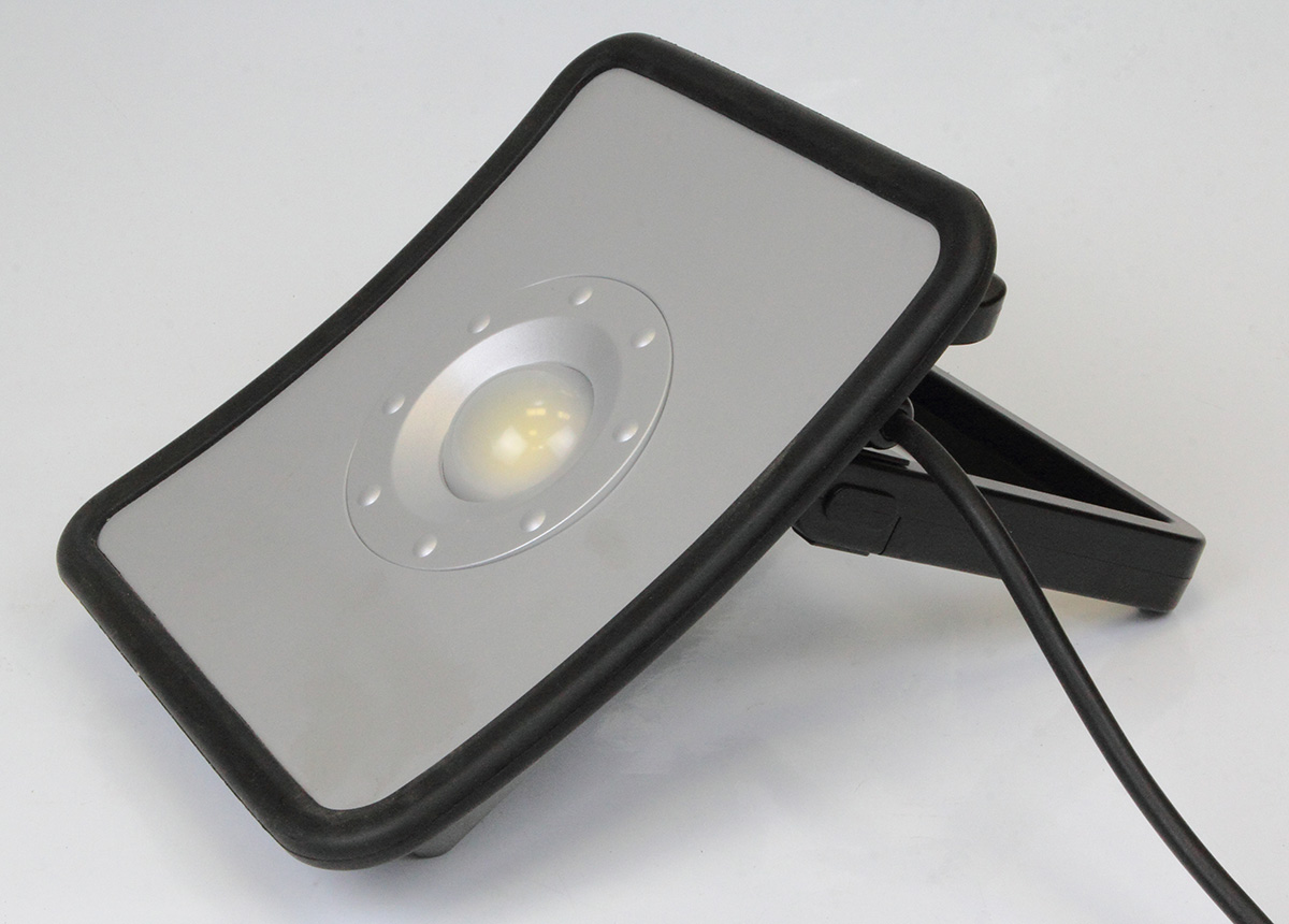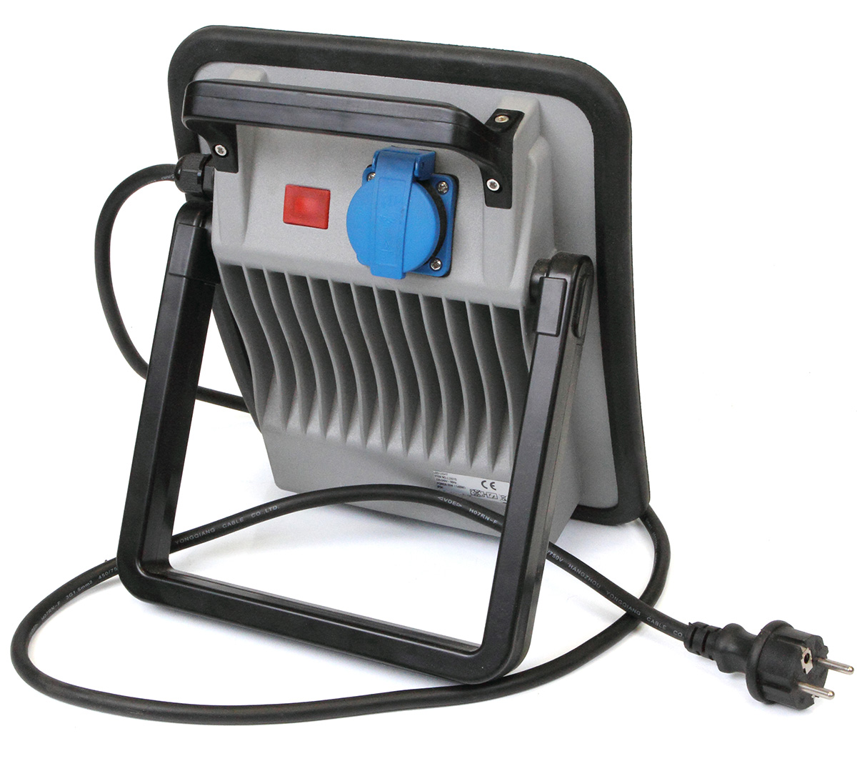 Корпус из ударопрочного пластика защищает прожектор от механических повреждений, а класс защиты IP 54 предотвращает воздействия грязи и влаги, что особенно актуально при работе вне помещений.