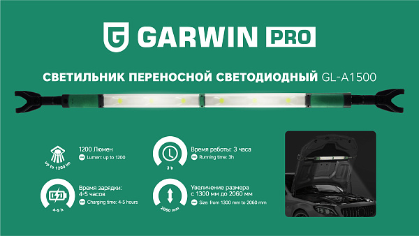 Светильник переносной светодиодный аккумуляторный подкапотный GL-A1500, GARWIN PRO