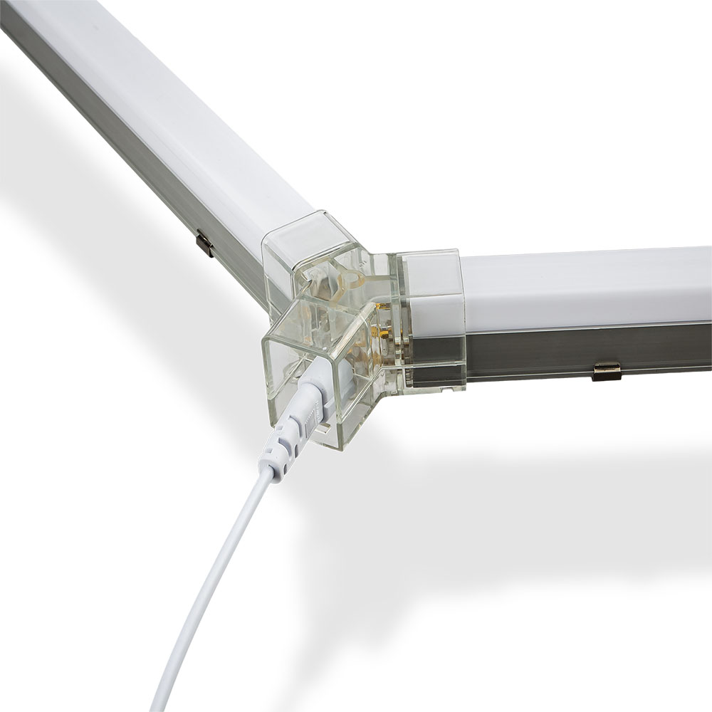 Модульная структура обеспечивает легкую сборку и монтаж. В комплекте все необходимое: лампы, коннекторы разных видов, шнур питания и скобы для крепления.