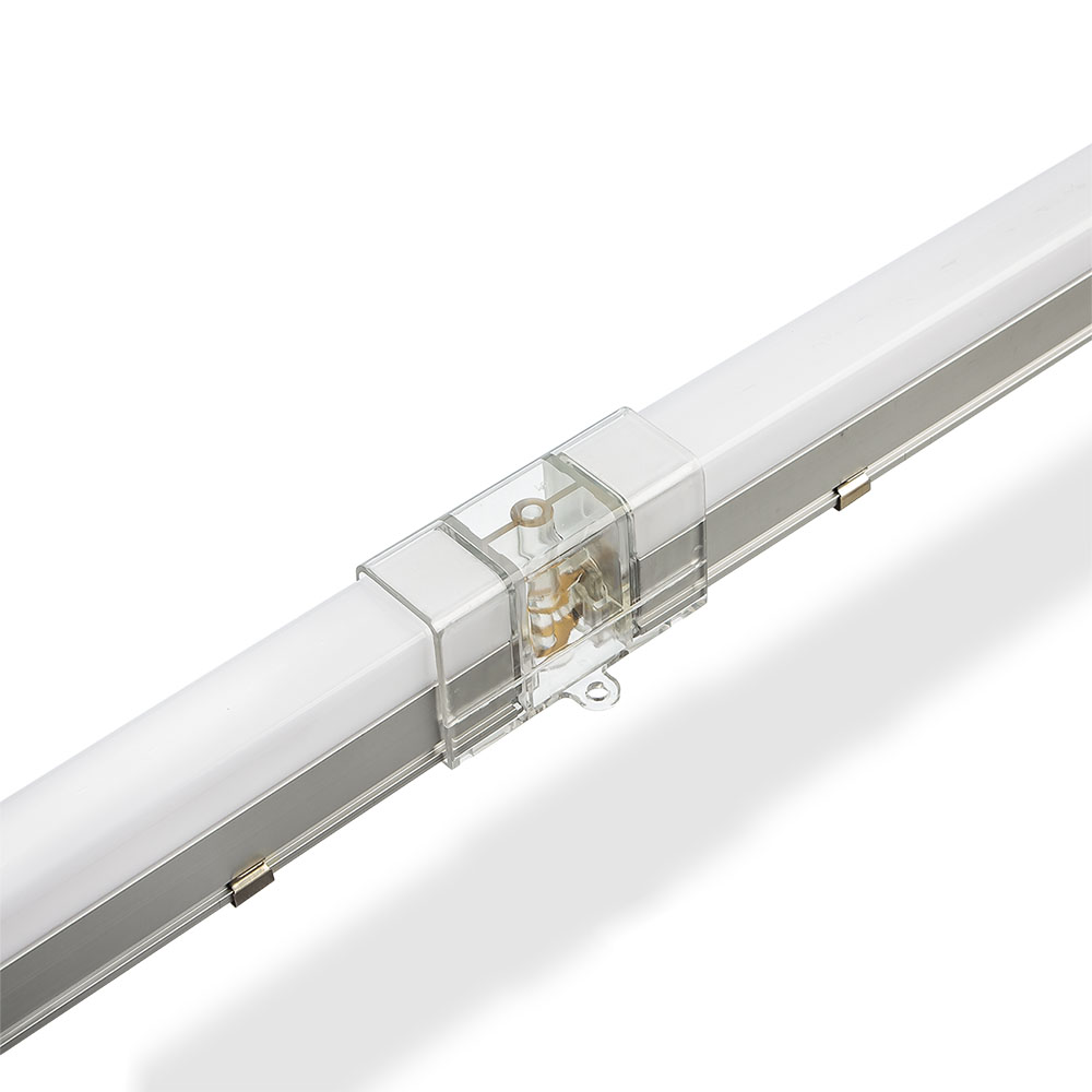 Изготовлен из прочного поликарбоната и алюминия, а плотное соединение коннекторов минимизирует попадание пыли и влаги, поэтому светильник имеет степень защиты IP54. Срок службы — 20000 часов. Сила светового потока одной секции — 120 Лм.