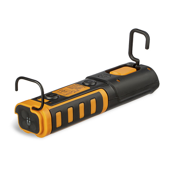 Поворотная конструкция позволяет изменять угол наклона фонаря для максимально удобного освещения. Магнитный держатель обеспечивает крепление фонаря на металлические вертикальные и горизонтальные поверхности. Дополнительная возможность крепления – поворотный крюк для подвешивания. Благодаря небольшому весу и нескользящему корпусу фонарь удобно лежит в руке.