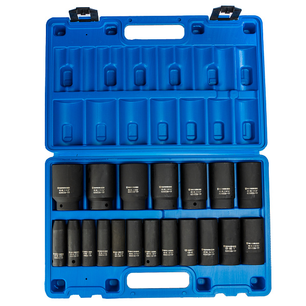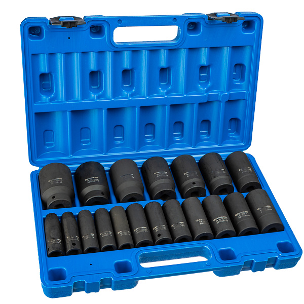 Набор ударных головок дюймовых глубоких 1/2", 78 мм, 19 пр., 3/8" — 1-1/2"