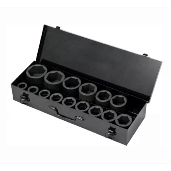 В наборе 15 стандартных шестигранных головок от 22 до 60 мм.