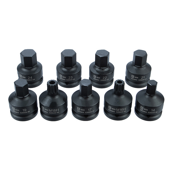 Набор ударных головок GARWIN 626605-SET9 из хром-молибденовой стали с антикоррозийным марганцево фосфатным покрытием, предназначен для монтажа/демонтажа резьбового крепежа. Чаще всего используется при работе с ударным гайковертом.