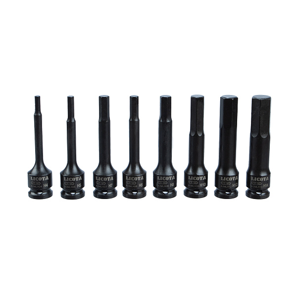 Набор головок торцевых глубоких ударных Licota из хром-молибденовой стали. Предназначен для монтажа/демонтажа резьбового крепежа, чаще всего используется при работе с ударным пневматическим инструментом.