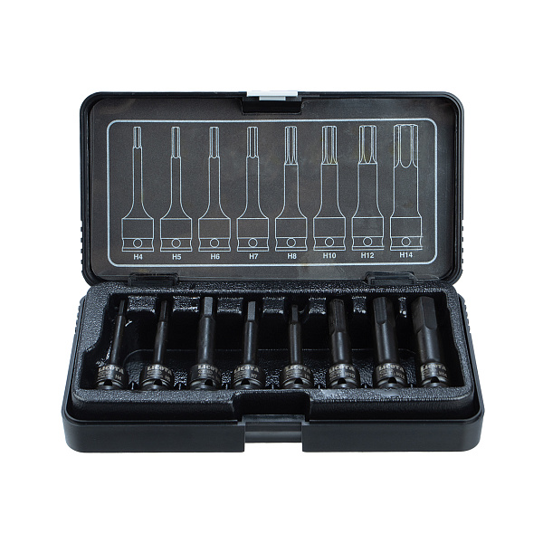 Набор шестигранников ударных 3/8" HEX 4, 5, 6, 7, 8, 10, 12, 14 мм 8 пр, длина 78 мм