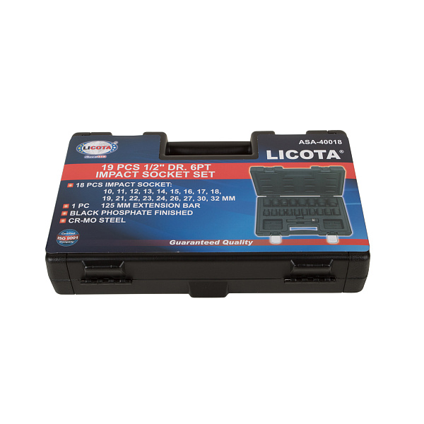 Набор ударных головок 1/2" 19 пр., 10-32 мм в кейсе, Licota, ASA-40018