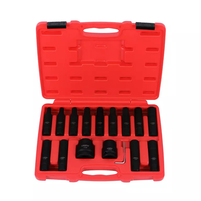 Набор бит Licota ATF-5219 из хром-молибденовой стали состоит из 16 предметов с рабочими профилями для крепежа с разными типами головок. В универсальный набор входят: насадки HEX (шестигранники наружные), насадки TORX (наружные), насадки E-профиля (внутренние). Длина насадок - 107 мм. В комплекте две торцевых головки-адаптера для бит (на ¾ дюйма и 1 дюйм) и Г-образный шестигранный ключ на 4 мм.