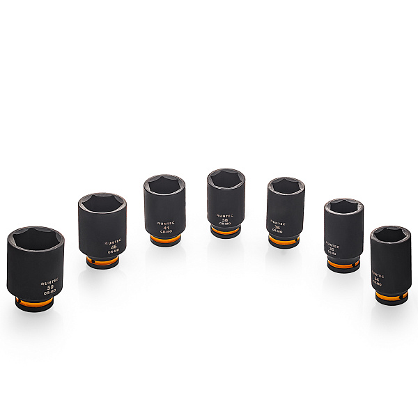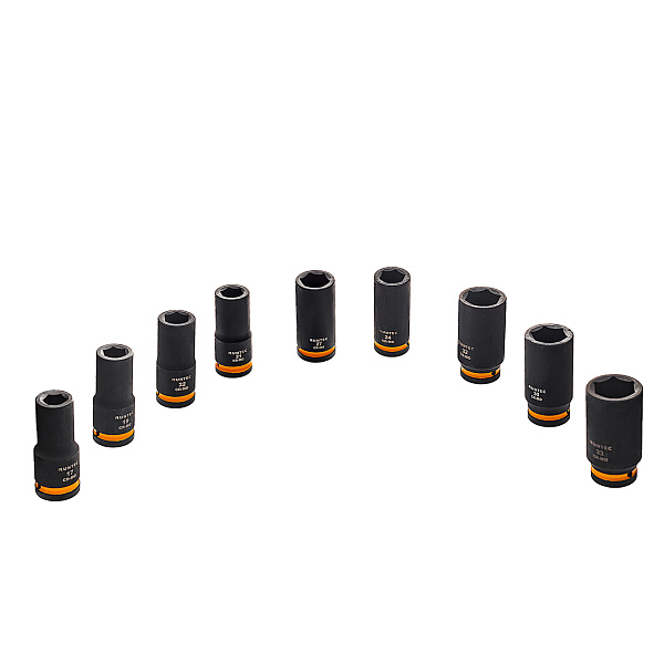 Набор шестигранных глубоких ударных головок, изготовленных из высококачественной закаленной хромомолибденовой стали CrMo, устойчивой к высоким ударным нагрузкам с оптимальным сочетанием твердости и ударной вязкости для интенсивной эксплуатации в тяжелых условиях.