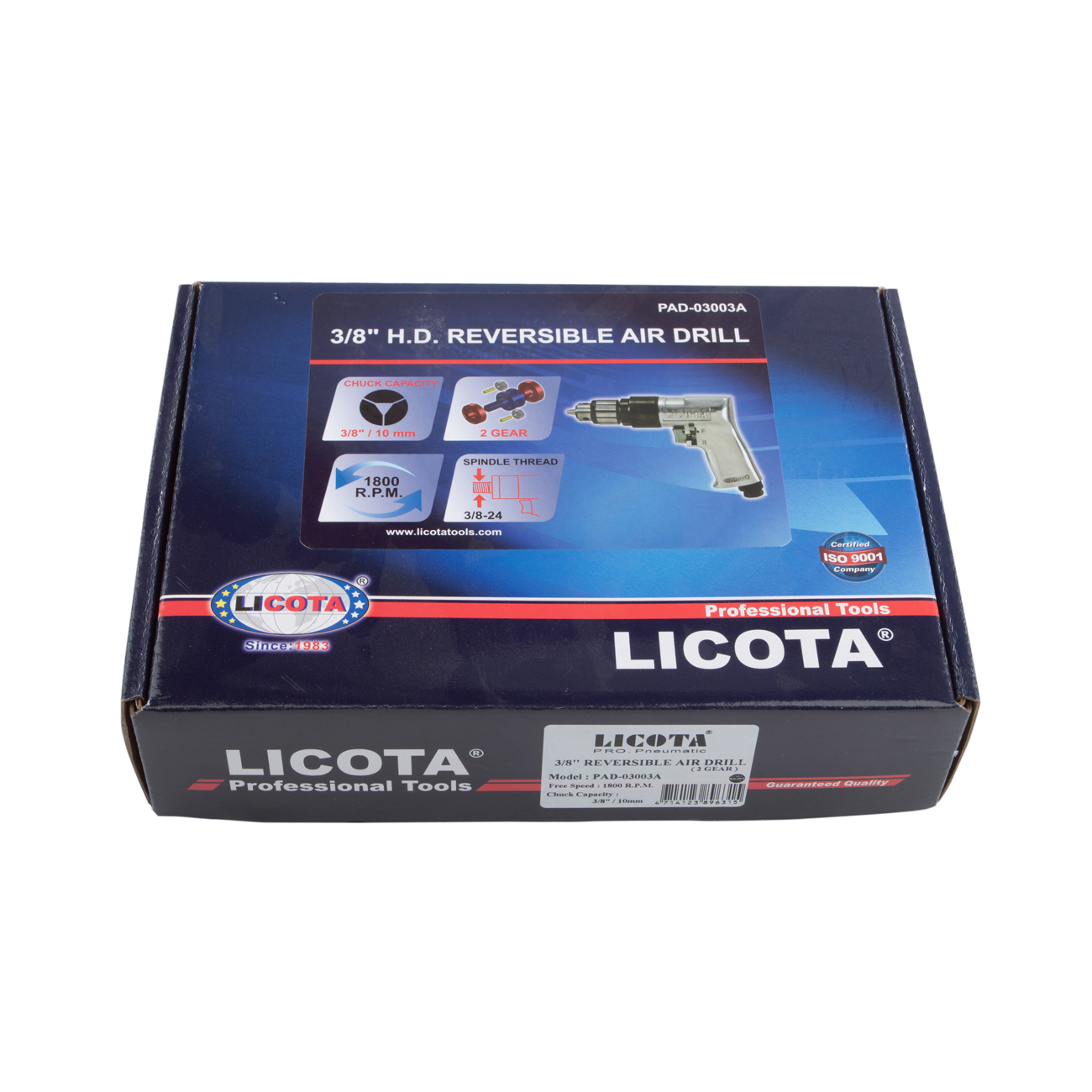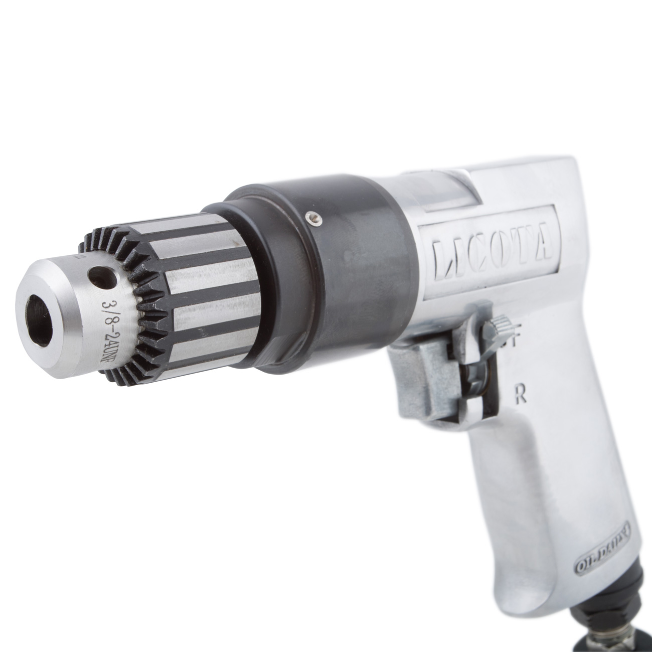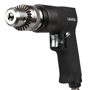 Дрель пневматическая усиленная Licota PAD-03003A пистолетного типа в металлическом корпусе. Предназначена для сверления сквозных и глухих отверстий диаметром до 10 мм в различных материалах.
