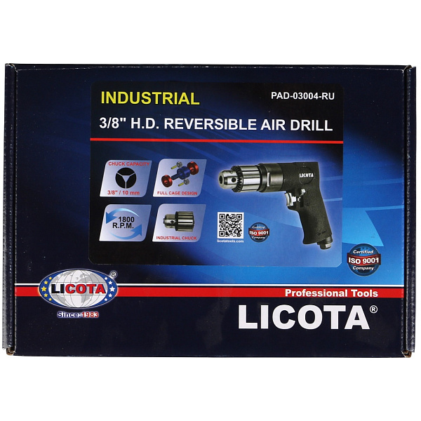 Дрель пневматическая 3/8" с реверсом 1800 об/мин, усиленная