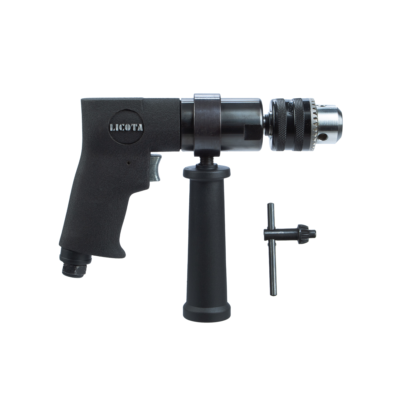 Дрель пневматическая Licota PAD-04004 пистолетного типа в корпусе со съемной рукояткой. Предназначена для сверления сквозных и глухих отверстий диаметром до 13 мм в различных материалах.