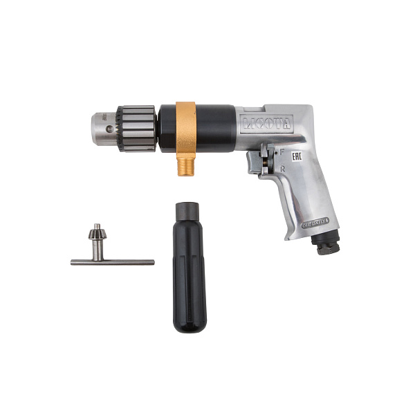 Дрель пневматическая усиленная Licota PAD-04004A пистолетного типа в металлическом корпусе со съемной рукояткой. Предназначена для сверления сквозных и глухих отверстий диаметром до 13 мм в различных материалах.