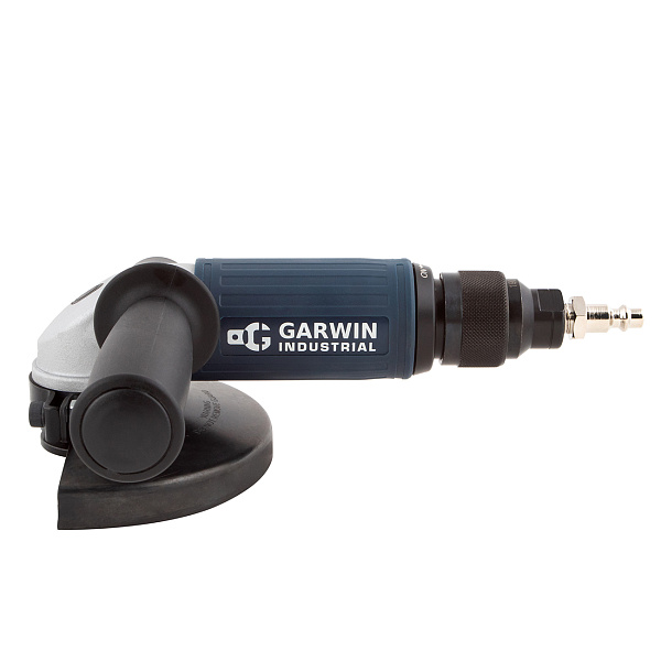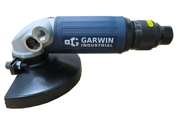 Пневматическая углошлифовальная машинка GARWIN INDUSTRIAL 803017-12-20 в композитном корпусе с поворотным включателем. Мощность - 1,2 л.с. (895 Вт).