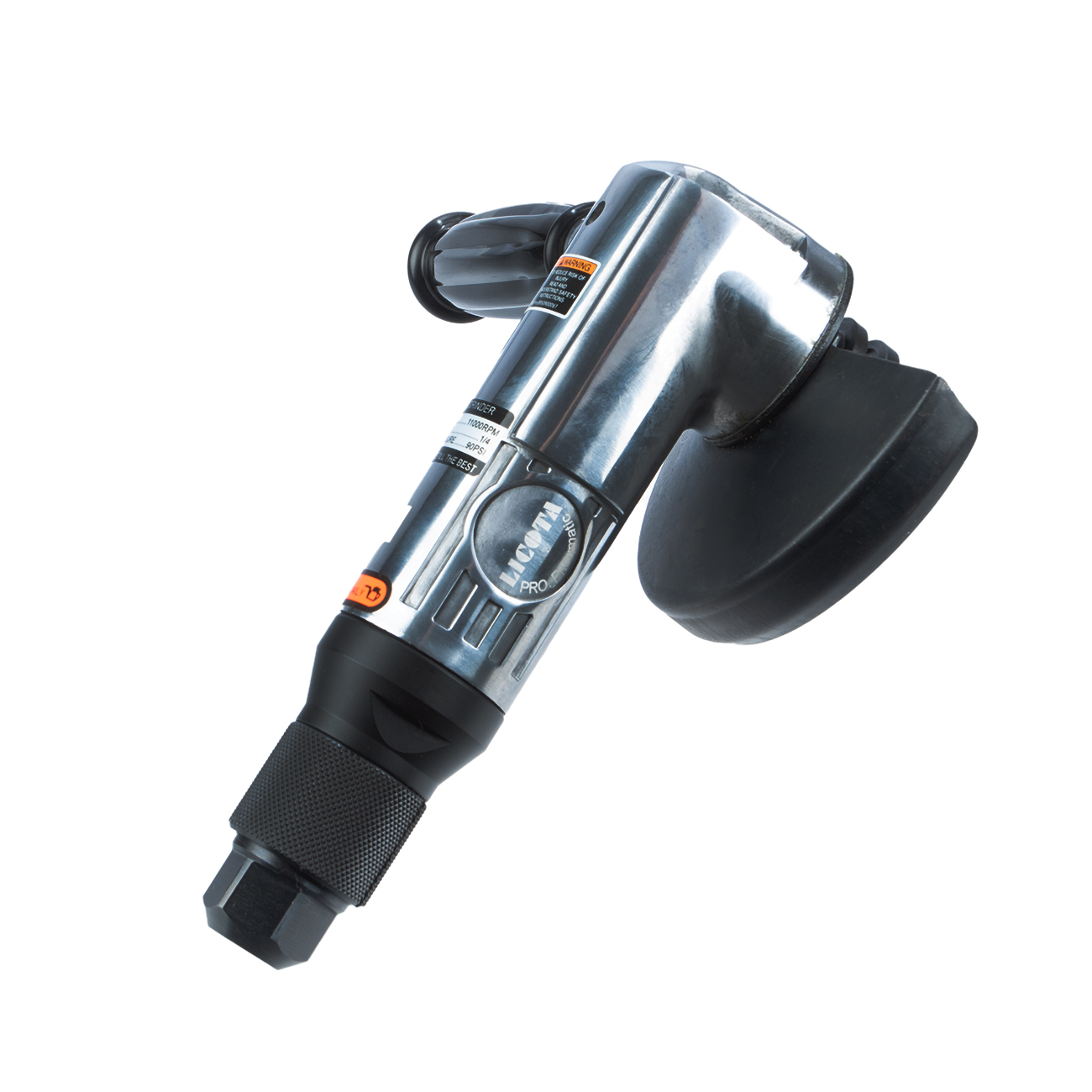 Пневматическая углошлифовальная машинка Licota PAG-30014-5W в металлическом корпусе с рычажным включателем и предохранительным механизмом.