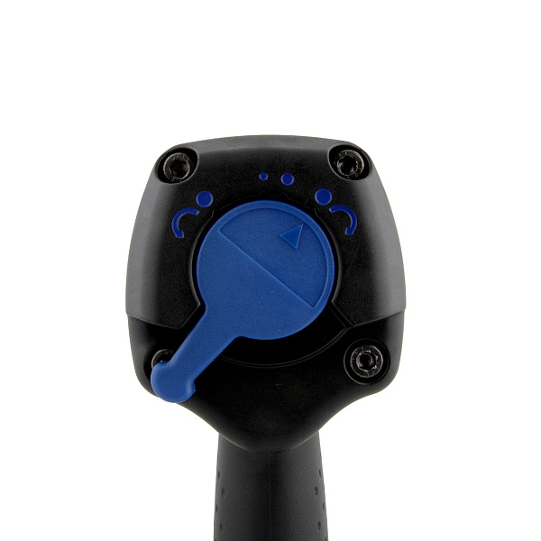 Переключатель скоростей расположена в задней части корпуса. Четыре режима работы (3 на закручивание и 1 на откручивание) обеспечивают комфортную работу с резьбовыми соединениями разных размеров.