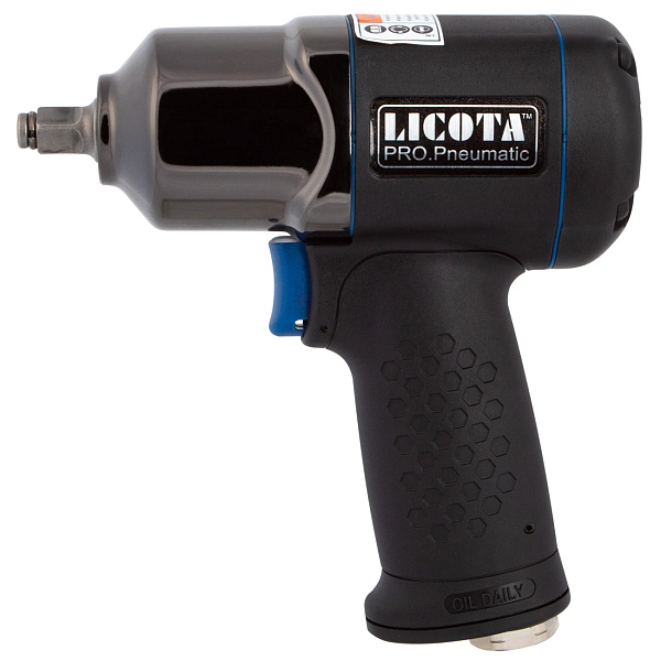 Вывод воздуха осуществляется вниз, благодаря этому инструмент не создает завихрений воздуха и пыли в рабочей зоне. Вес 1,33 кг и длина 158 мм позволяют оператору вести работы в ограниченном пространстве и дольше не утомляться. Сбалансированная развесовка не позволяет гайковерту “заваливаться” вперед или назад, что снижает нагрузку на кисть.