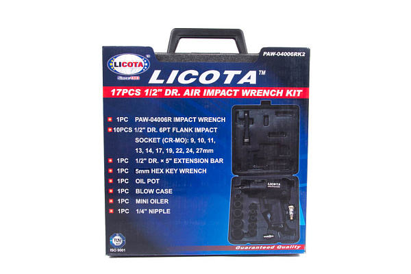 Гайковерт пневматический ударный 1/2" 563 Нм (57 кГм), с головками 9-27 мм и аксессуарами, в кейсе