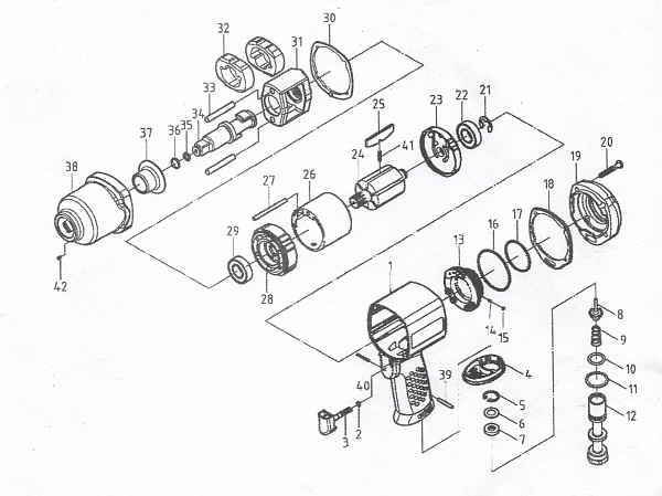 Ударный механизм Twin Hammer с двумя одинаковыми молотами дает сбалансированный удар и высокий крутящий момент на старте. Простота конструкции облегчает обслуживание инструмента.